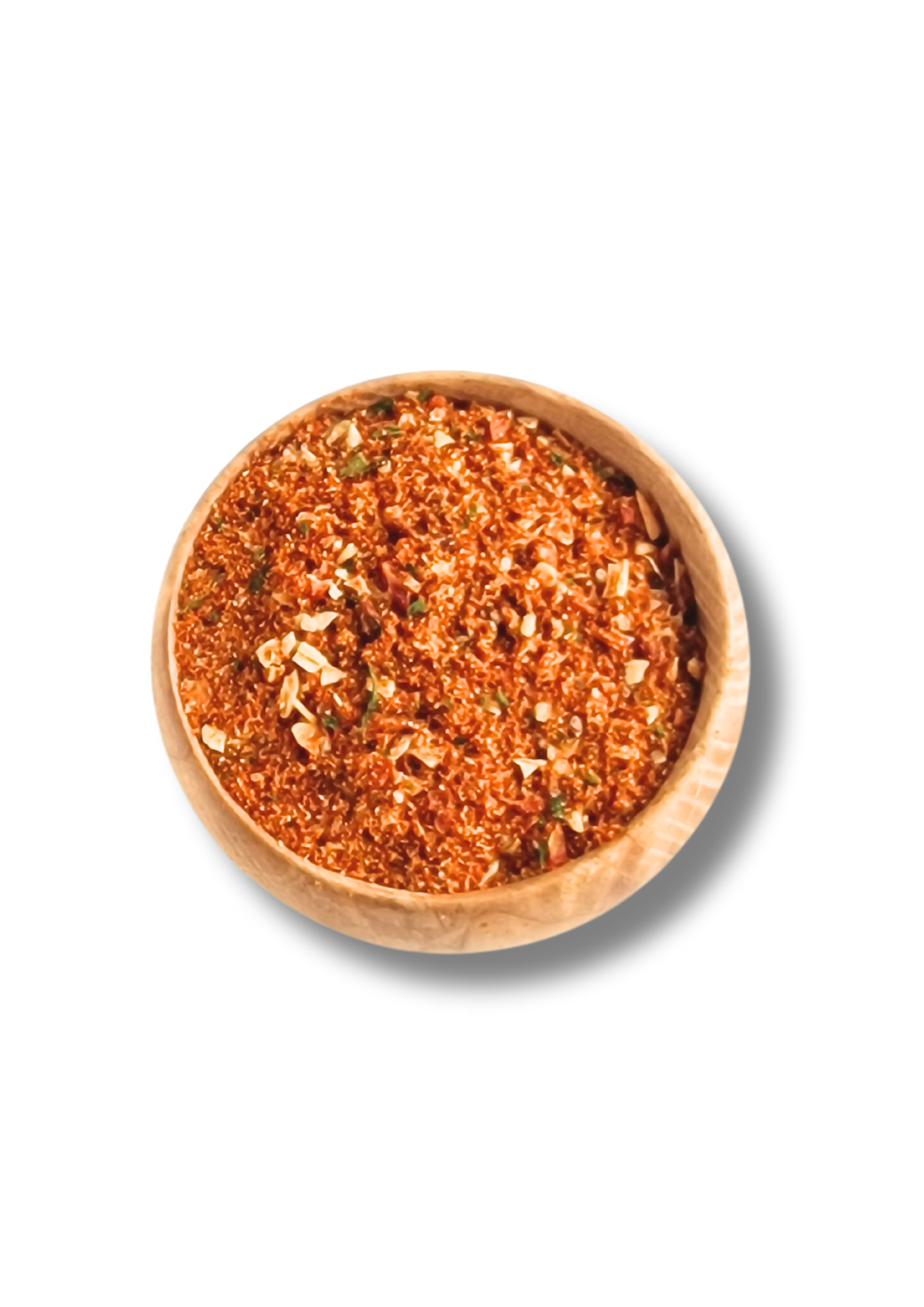Paprika, Knoblauch, Zwiebel, Chili, Kreuzkümmel, Sumach, Petersilie,Salz