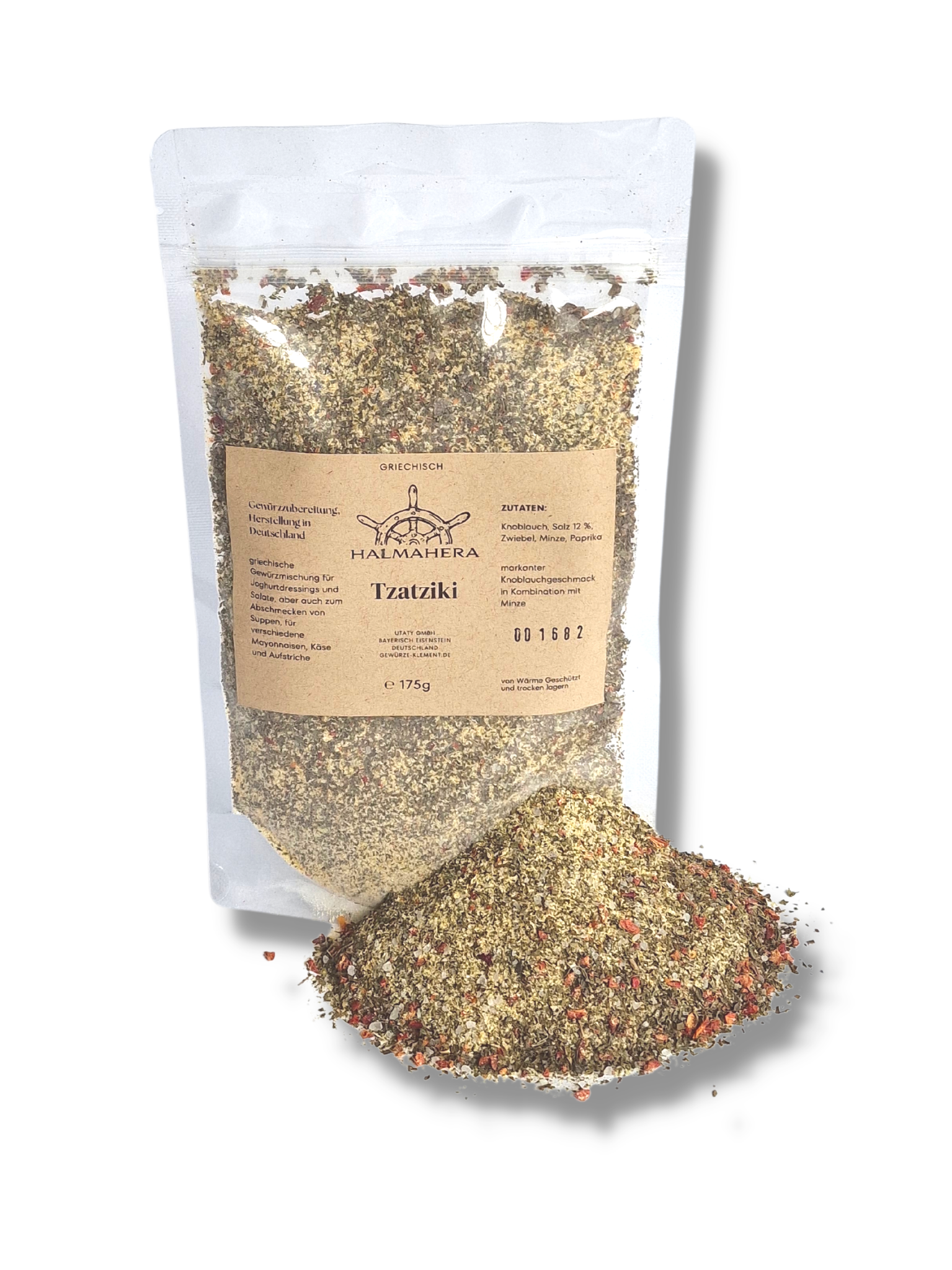 ▪ griechische Gewürzmischung für Joghurtdressings und Salate, aber auch zum Abschmecken von Suppen, für verschiedene Mayonnaisen, Käse und Aufstriche